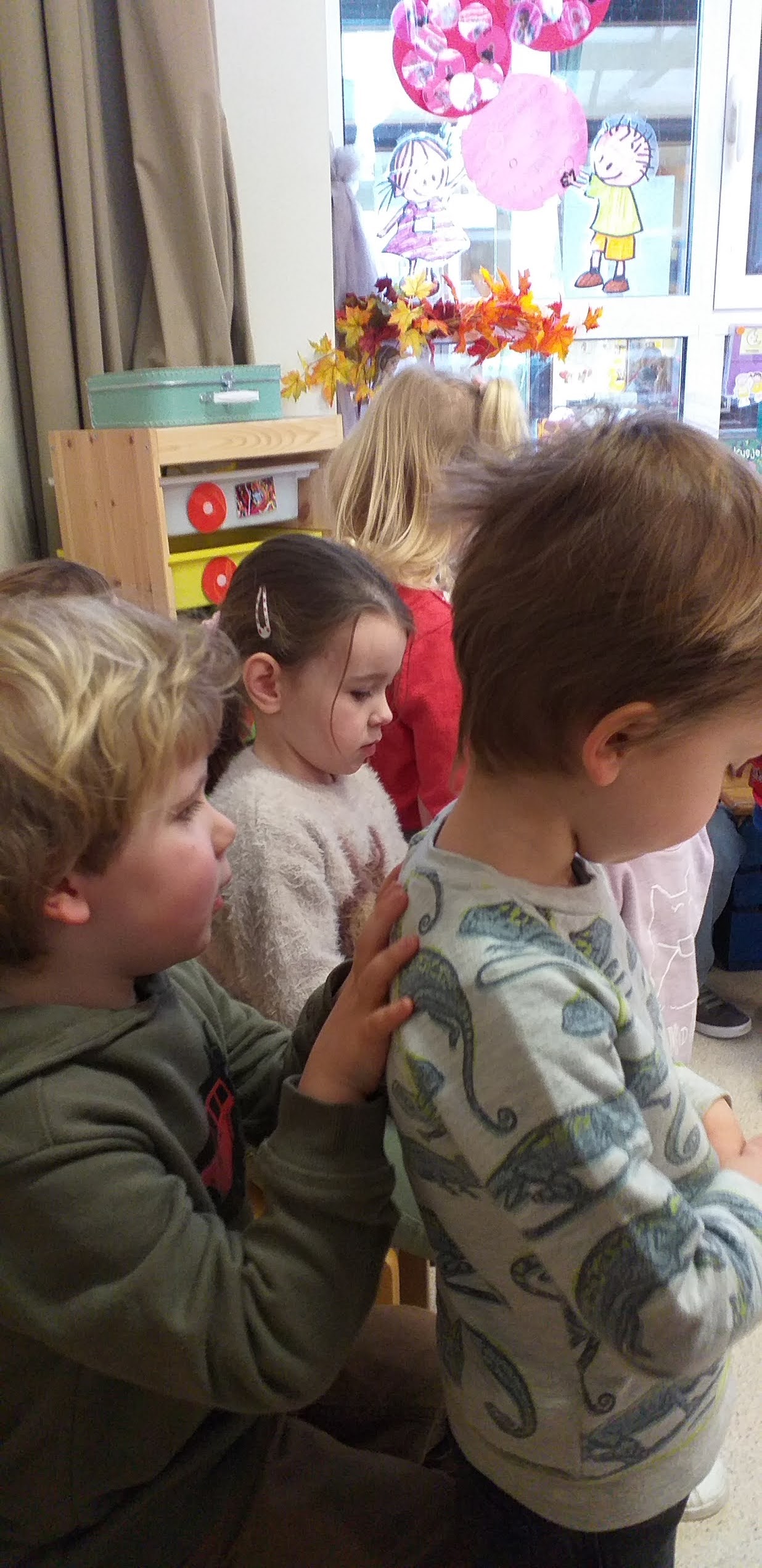 De nieuwe peuters mogen samen met de juf hun kaartje omdraaien.