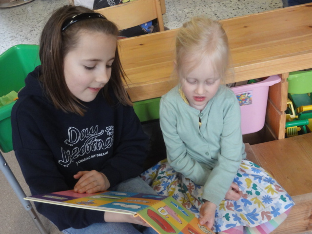 Ook het derde leerjaar kwam op bezoek in onze klas. Ze lazen elk aan 1 kindje van de klas voor! Wat een gezellig momentje was dat!