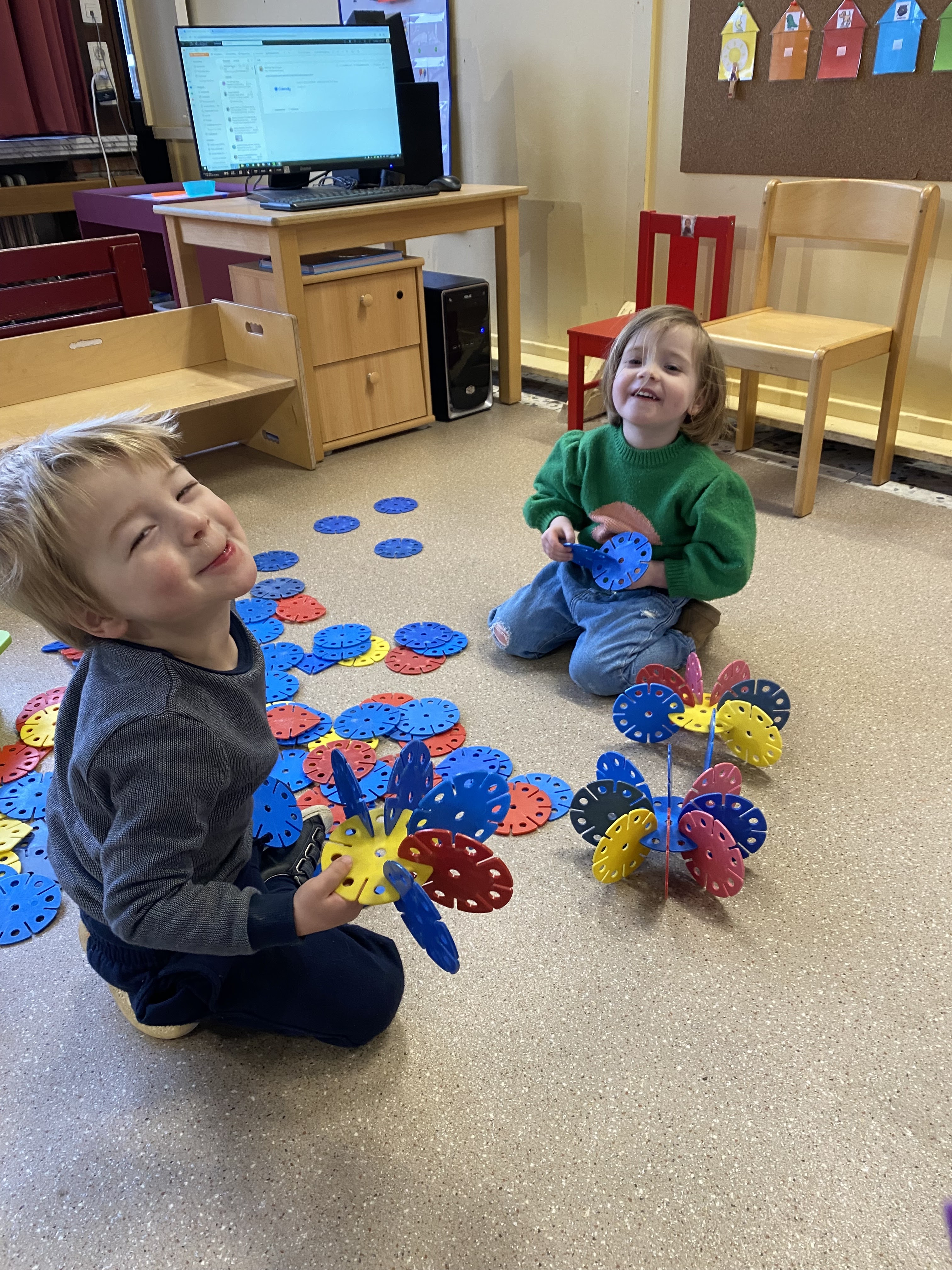 Iedereen van de klas mocht gras of bloemen schilderen.