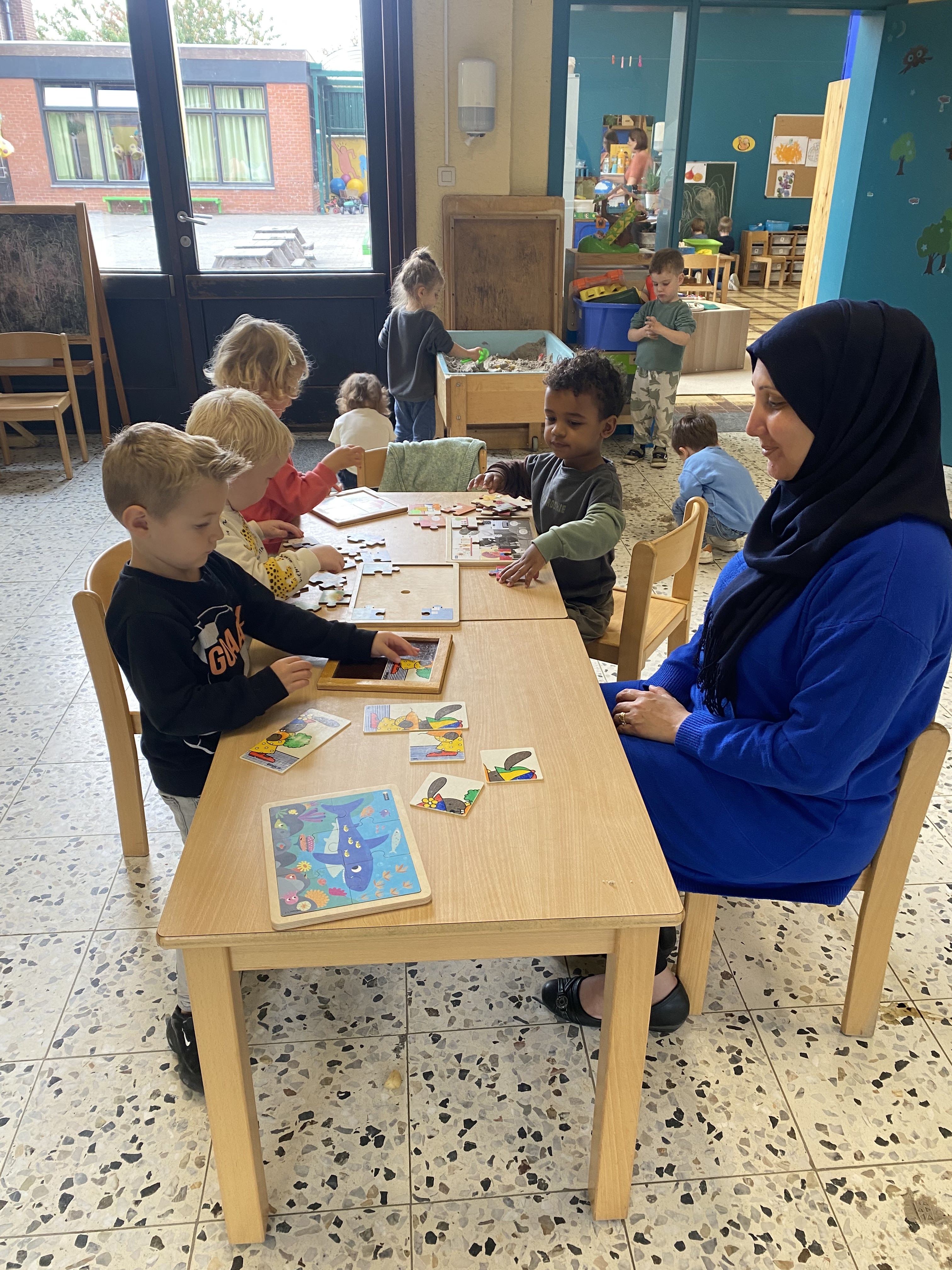 Ja hoor we mogen eens tekenen op de tafel: een ronde pompoen, klein, groot, oranje, groen …